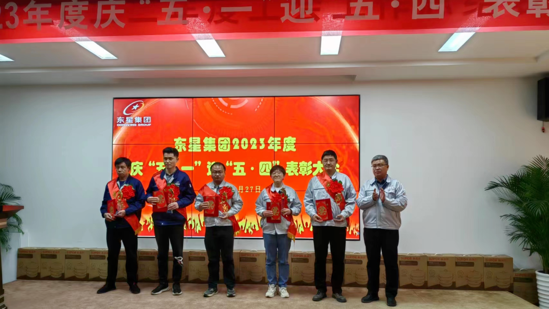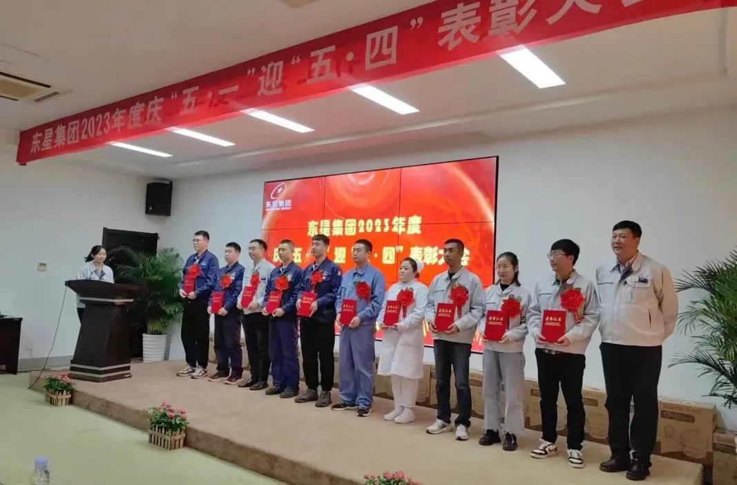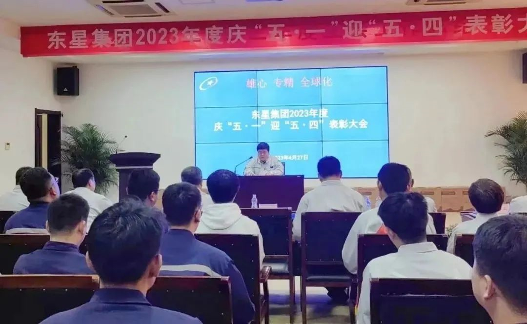 2023年4月27日下午,煙臺東星集團有限公司2023年度慶“五·一”迎“五·四”表彰大會在集團公司二樓會議廳舉行,集團公司董事長、總經(jīng)理于大偉出席會議并講話。集團公司副董事長、副總經(jīng)理厲強,集團公司副總經(jīng)理陳剛、王建全,各制造部和經(jīng)營單位領(lǐng)導(dǎo)、分會主席以及所有獲獎人員共計80余人參會。