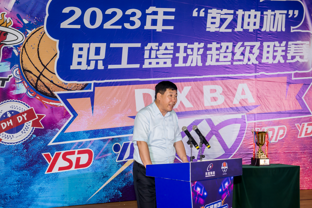 集團公司董事長、總經理于大偉在致辭中向各參賽隊的運動員、教練員表示了熱烈的祝賀,向為賽事組織、實施和保障做出突出貢獻的裁判員、工作人員以及各位熱心觀眾表示了衷心的感謝。于總指出,本屆“乾坤杯”職工籃球超級聯(lián)賽是常態(tài)化疫情防控以來,集團公司工會組織實施的規(guī)模最大、范圍最廣的一次體育賽事。10支球隊、100位運動員在20多場比賽中,昂揚青春,揮灑激情,結下了深厚的友誼。比賽不但提振了人心,鼓舞了士氣,更涌現(xiàn)出了一批復合型人才和高水平團隊。精彩的賽事,帶動了基層員工自發(fā)加入體育鍛煉,追求健康向上的生活方式,是全民健身在東星落地生根的真實寫照。下一步,集團公司還將持續(xù)推出各種類型的文體活動,著力打造東星文化品牌,持續(xù)提升員工的獲得感、歸屬感和幸福感,為集團公司高質量向前發(fā)展提供源源不斷的精神動力!于總號召集團公司廣大干部、職工,持續(xù)發(fā)揚“爭創(chuàng)一流、敢于拼搏”的體育精神,以這次比賽為契機,將活動過程中激發(fā)出的團隊意識和勇氣融入到日常工作中,銳意進取,勇攀高峰,在“行動2023、決戰(zhàn)2024、打贏三大戰(zhàn)役”的新征程上“摘金奪銀”,為實現(xiàn)“百年東星”的偉大夢想而不懈奮斗!