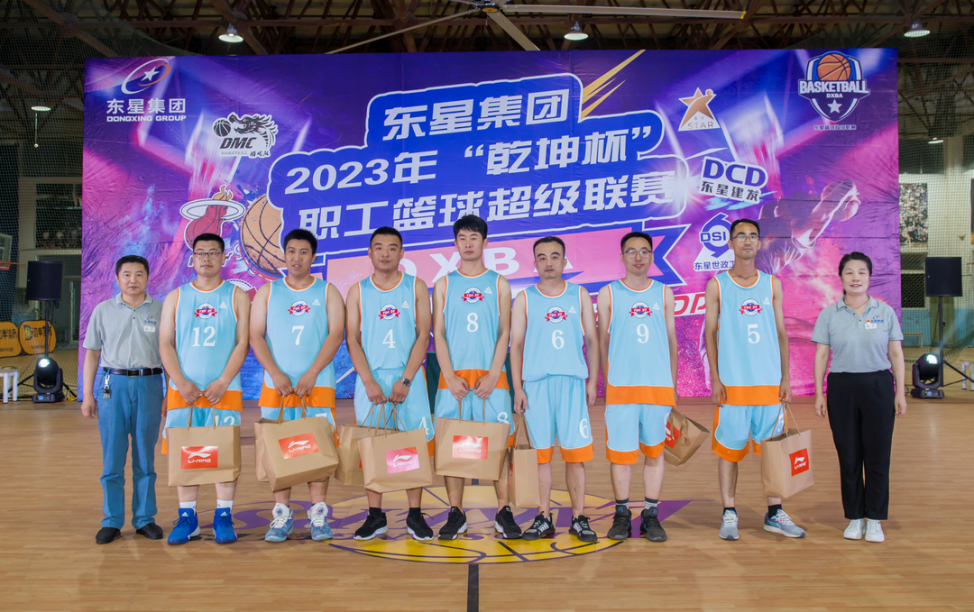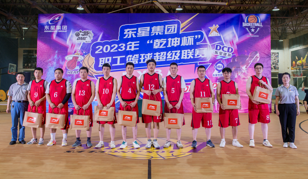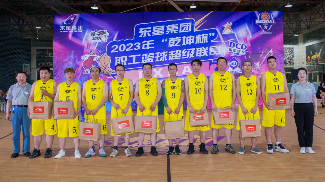 在頒獎環(huán)節(jié),集團公司副總經理陳剛宣讀了東星集團2023年“乾坤杯”職工籃球超級聯(lián)賽獲獎團隊名單:星光隊、管路隊、YSD隊分獲冠、亞、季軍;YSM隊獲得第四名;皓風隊、夢幻隊、星石隊、夢之隊、建發(fā)電氣隊、熱火隊獲得優(yōu)秀獎;建發(fā)電氣隊獲得優(yōu)秀組織獎。集團公司董事長、總經理于大偉,集團公司副董事長、副總經理厲強,集團公司副總經理陳剛,集團公司工會主席李金霞、集團公司人力資源部部長高克忠分別為所有獲獎球隊頒發(fā)了獎品。當于大偉董事長親手將“乾坤杯”交到星光隊隊長劉偉手中時,現(xiàn)場氣氛達到了高潮。