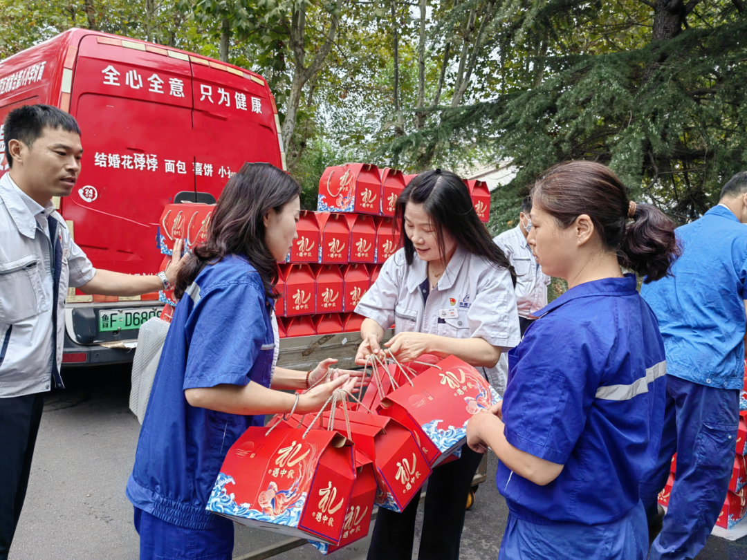 金秋送爽,丹桂飄香。隨著中秋、國慶雙節(jié)的臨近,集團公司工會為全體員工精心挑選了傳統(tǒng)的手工月餅禮盒發(fā)放到各部門,并由各部門分會下發(fā)到員工手中。