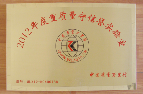 喜獲“2012年度重質(zhì)量守信譽(yù)實(shí)驗(yàn)室”稱號(hào)