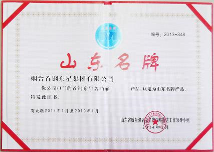 “東星”注冊商標的銷軸產(chǎn)品獲得山東省名牌產(chǎn)品稱號