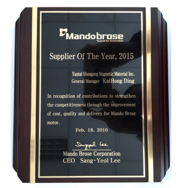 日前,韓國(guó)萬都博澤在仁川舉行了2015年度的供應(yīng)商表彰大會(huì),YSM從100多個(gè)供應(yīng)商中脫穎而出,榮獲了唯一的“年度供應(yīng)商”殊榮。