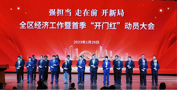 1月29日上午,煙臺(tái)黃渤海新區(qū)“強(qiáng)擔(dān)當(dāng) 走在前 開新局 全區(qū)經(jīng)濟(jì)工作暨首季‘開門紅’動(dòng)員大會(huì)”在八角灣國(guó)際會(huì)展中心隆重召開。會(huì)上,東星集團(tuán)再獲殊榮,被評(píng)為“2022年度履行社會(huì)責(zé)任一等獎(jiǎng)企業(yè)”,公司董事長(zhǎng)、總經(jīng)理于大偉被評(píng)為“履行社會(huì)責(zé)任優(yōu)秀企業(yè)家”。 2022年,集團(tuán)公司在黃渤海新區(qū)工委、管委的領(lǐng)導(dǎo)下,緊緊圍繞“雙核一重點(diǎn)”、“雙百工程”及經(jīng)營(yíng)目標(biāo)倍增計(jì)劃,攻堅(jiān)克難、砥礪前行,以昂揚(yáng)的斗志逆勢(shì)奮起,成功實(shí)現(xiàn)了戰(zhàn)疫情、促增長(zhǎng)、保安全的工作目標(biāo),為公司的下一步發(fā)展奠定了堅(jiān)實(shí)的基礎(chǔ)。同時(shí),集團(tuán)公司還在綠色能源產(chǎn)業(yè)投入、助力鄉(xiāng)村振興、維護(hù)網(wǎng)絡(luò)文明、加大安全生產(chǎn)宣傳力度等方面持續(xù)發(fā)力,積極履行社會(huì)責(zé)任,彰顯了企業(yè)責(zé)任與擔(dān)當(dāng)。 新的一年已經(jīng)開啟,東星集團(tuán)將繼續(xù)積極履行社會(huì)責(zé)任,創(chuàng)新工作思路,努力提高企業(yè)運(yùn)營(yíng)效益,強(qiáng)力抓好新園區(qū)建設(shè),為黃渤海新區(qū)“強(qiáng)擔(dān)當(dāng) 走在前 開新局”貢獻(xiàn)東星力量。