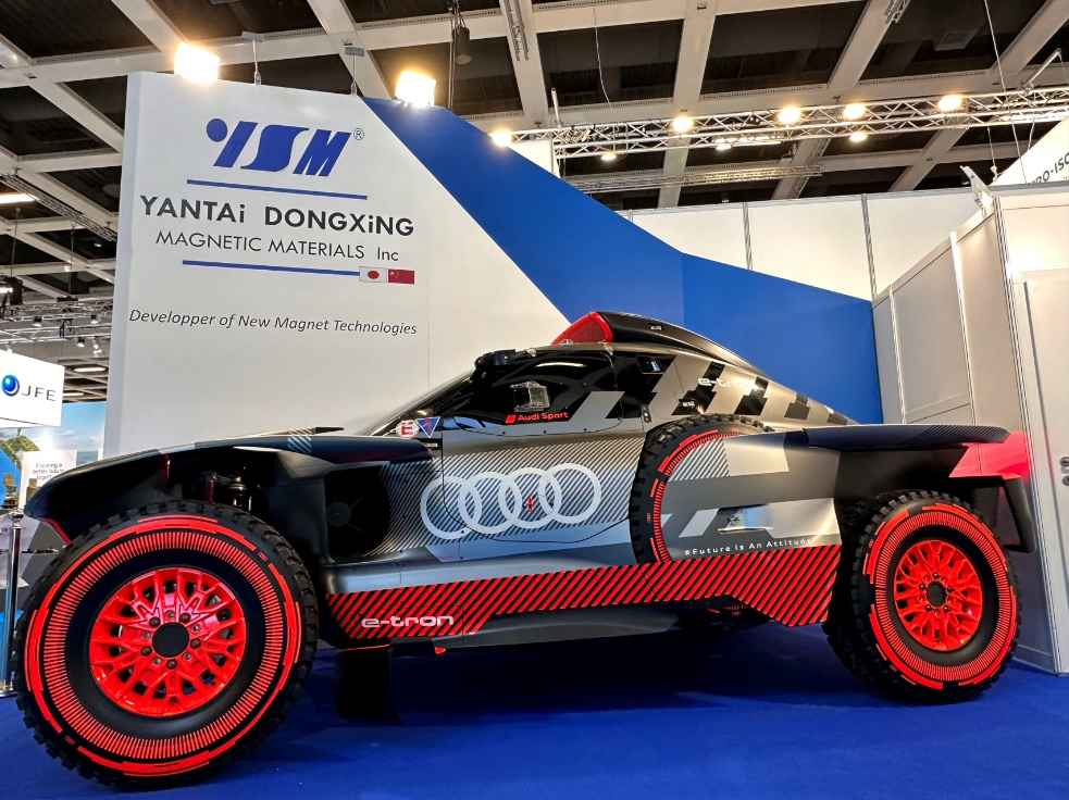 本次展會,YSM展位上來了一位特殊的朋友—Audi RS E-Tron賽車,這輛車的驅(qū)動電機使用了YSM專門為Audi Formula Racing開發(fā)的高性能燒結(jié)釹鐵硼磁鐵,Audi公司安排自己的專業(yè)團隊護送車輛到展位,以表達對YSM提供強大技術(shù)支持的感謝。