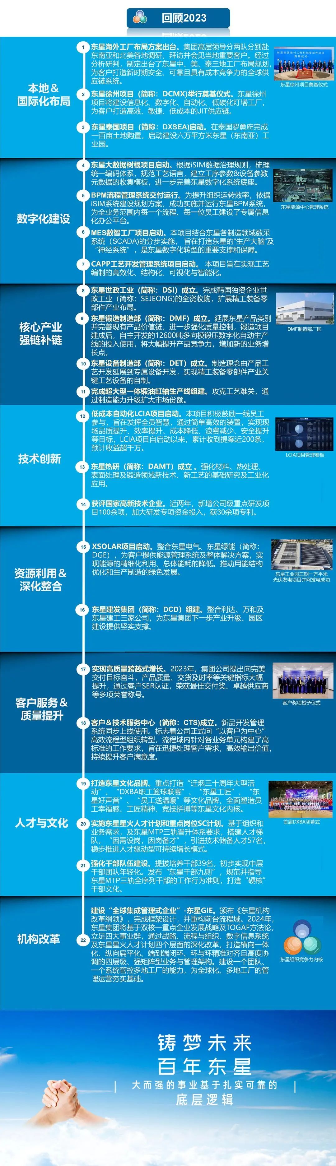 2023年,東星集團(tuán)以“雙核一重點(diǎn)”戰(zhàn)略為指引,以R³TIM六項(xiàng)系統(tǒng)工作為抓手,全面推進(jìn)全球化、數(shù)字化、精益化、低碳化轉(zhuǎn)型,鑄造可以滿足全球市場(chǎng)競(jìng)爭(zhēng)需求的敏捷、高效、可持續(xù)改進(jìn)的核心競(jìng)爭(zhēng)力。