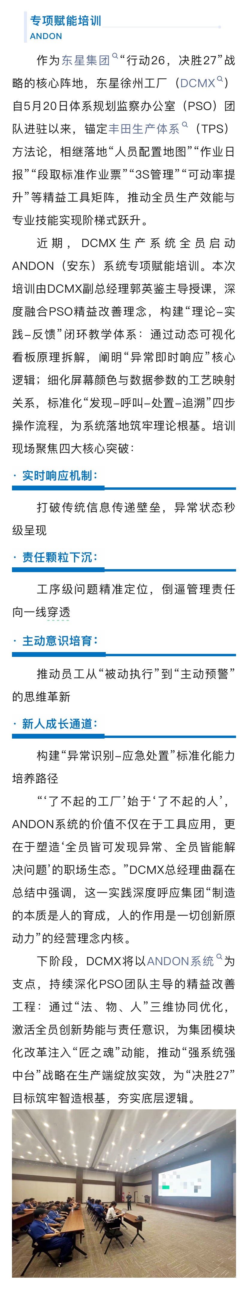 東星夢(mèng)工廠重要實(shí)踐:DCMX啟動(dòng)ANDON培訓(xùn)