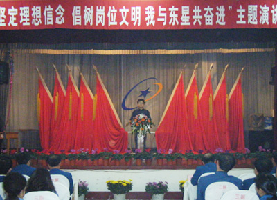 十月十六日,公司在職工活動中心舉辦了“堅定理想信念倡樹崗位文明 我與東星共奮進”主題演講會,這是公司八月份以來在全公司團員青年中開展的“堅定理想信念 倡樹崗位文明 我與東星共奮進”主題教育活動中的一項重要內容,各單位團支部和廣大團員青年積極組織、廣泛參與,活動取得較好效果。